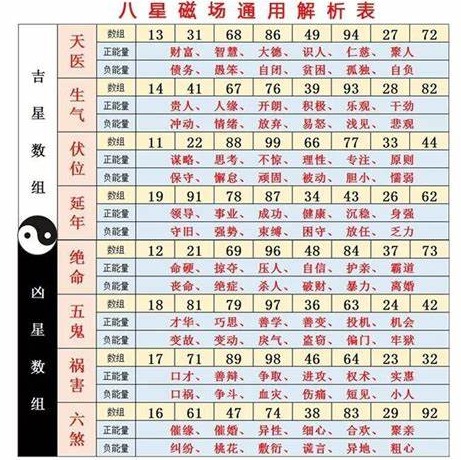 天医、延年、绝命、六煞等数字号码对应的吉凶与五行