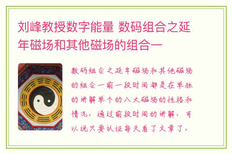 刘峰教授数字能量 数码组合之延年磁场和其他磁场的组合一